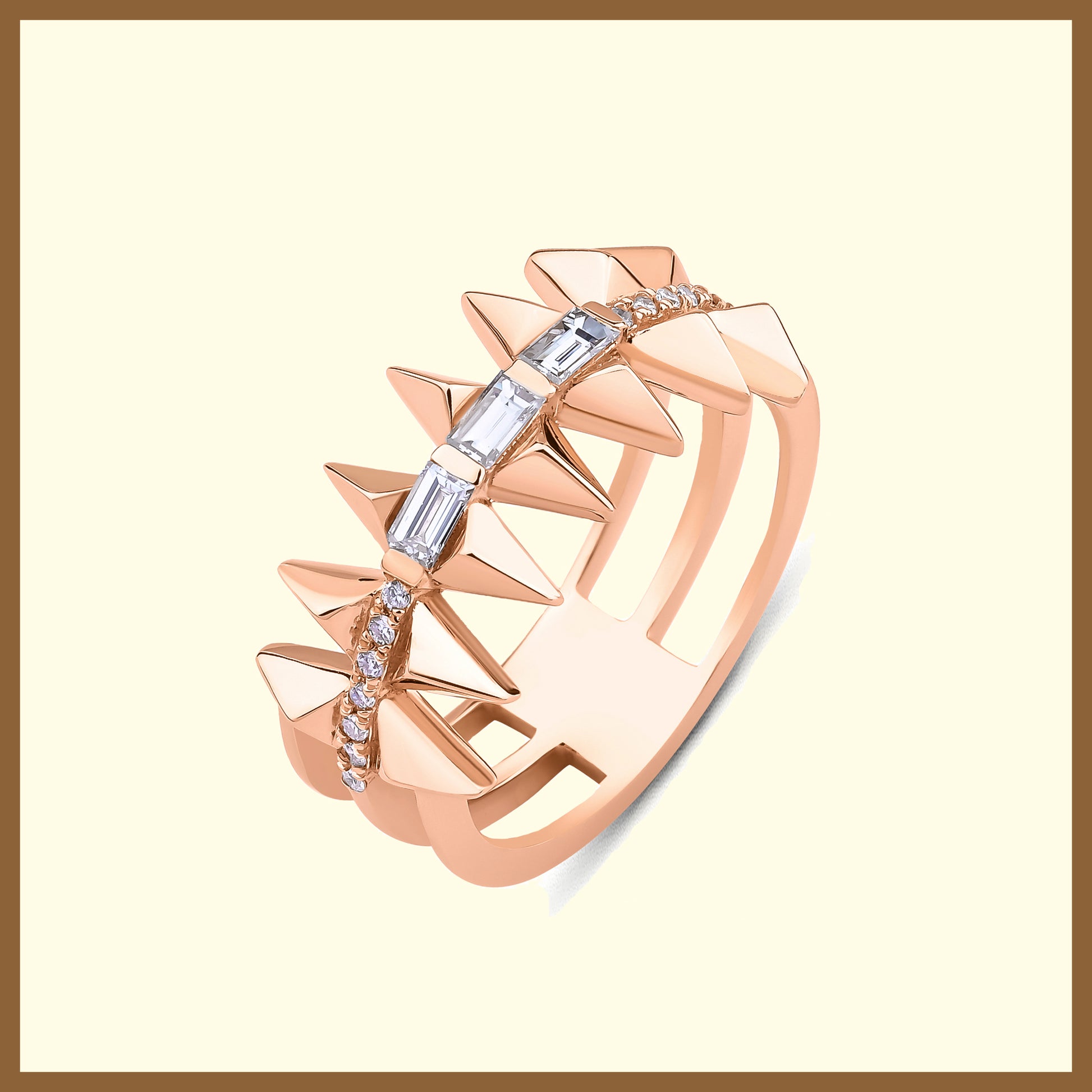 Ok Desenli Baget Pırlantalı Tasarım Rose Altın Yüzük
