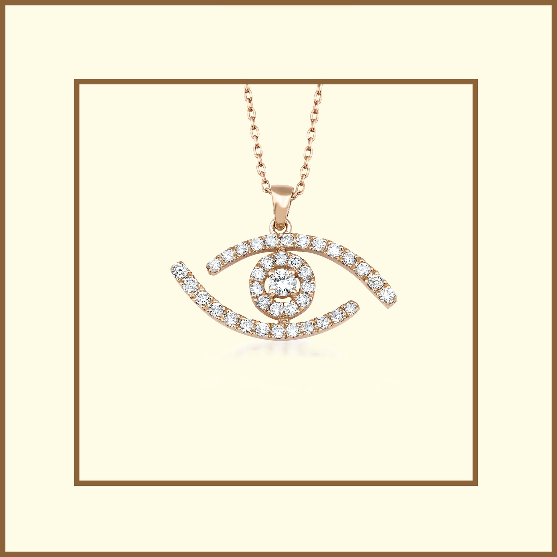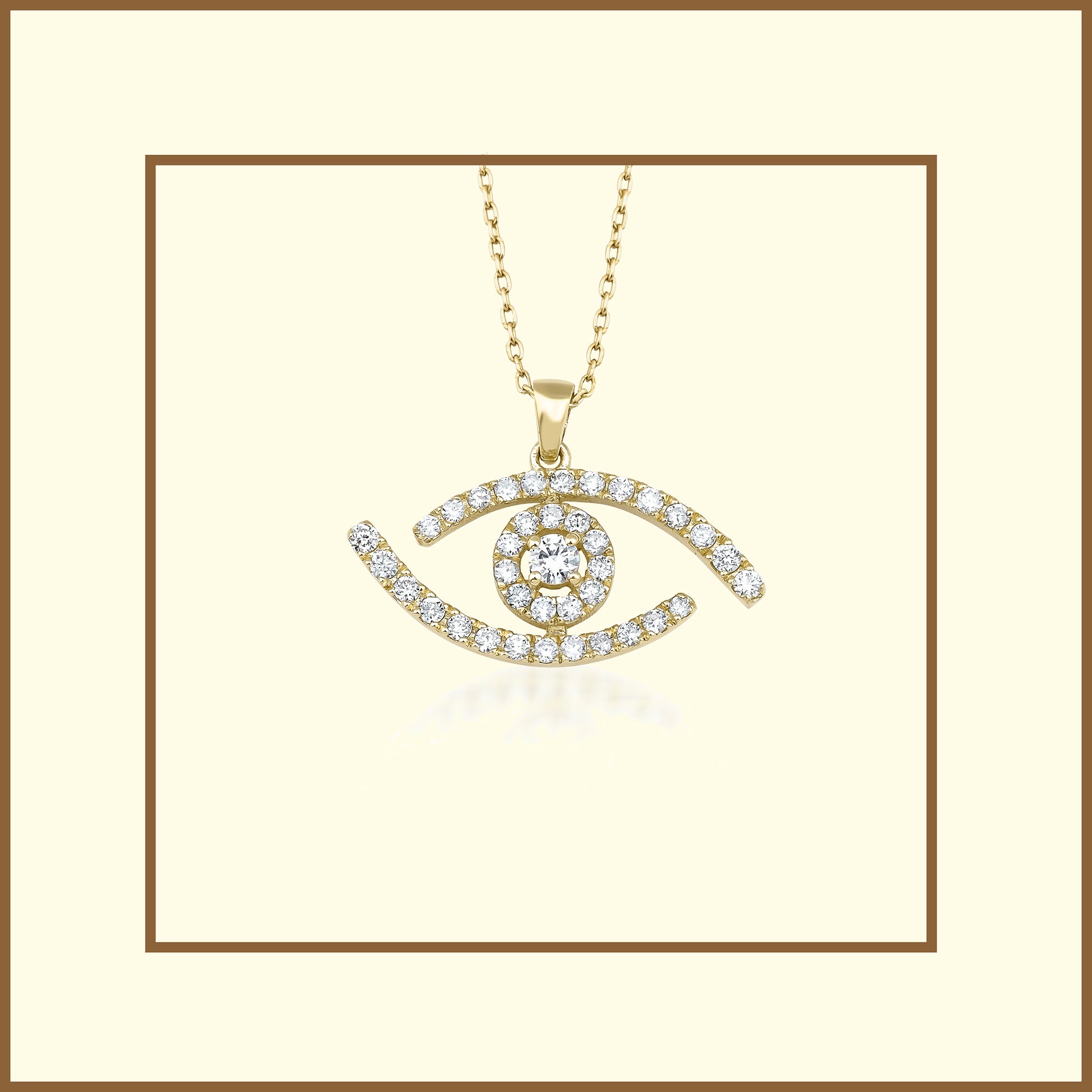Göz detaylı altın pırlanta kolyemiz tüm parıltısıyla size bir adım uzakta…
